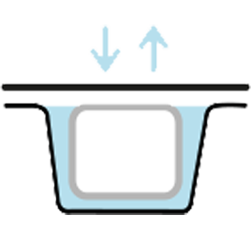 Skin con e senza protrusione. Saldatura continua su tutta la vaschetta. Capacità fino a 80 mm di protrusione.